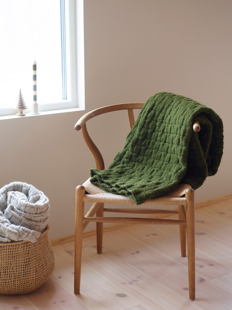 Het Rute deken wordt heen en weer gebreid waarbij een ruitpatroon wordt gevormd door rechte en averechte steken af te wisselen.